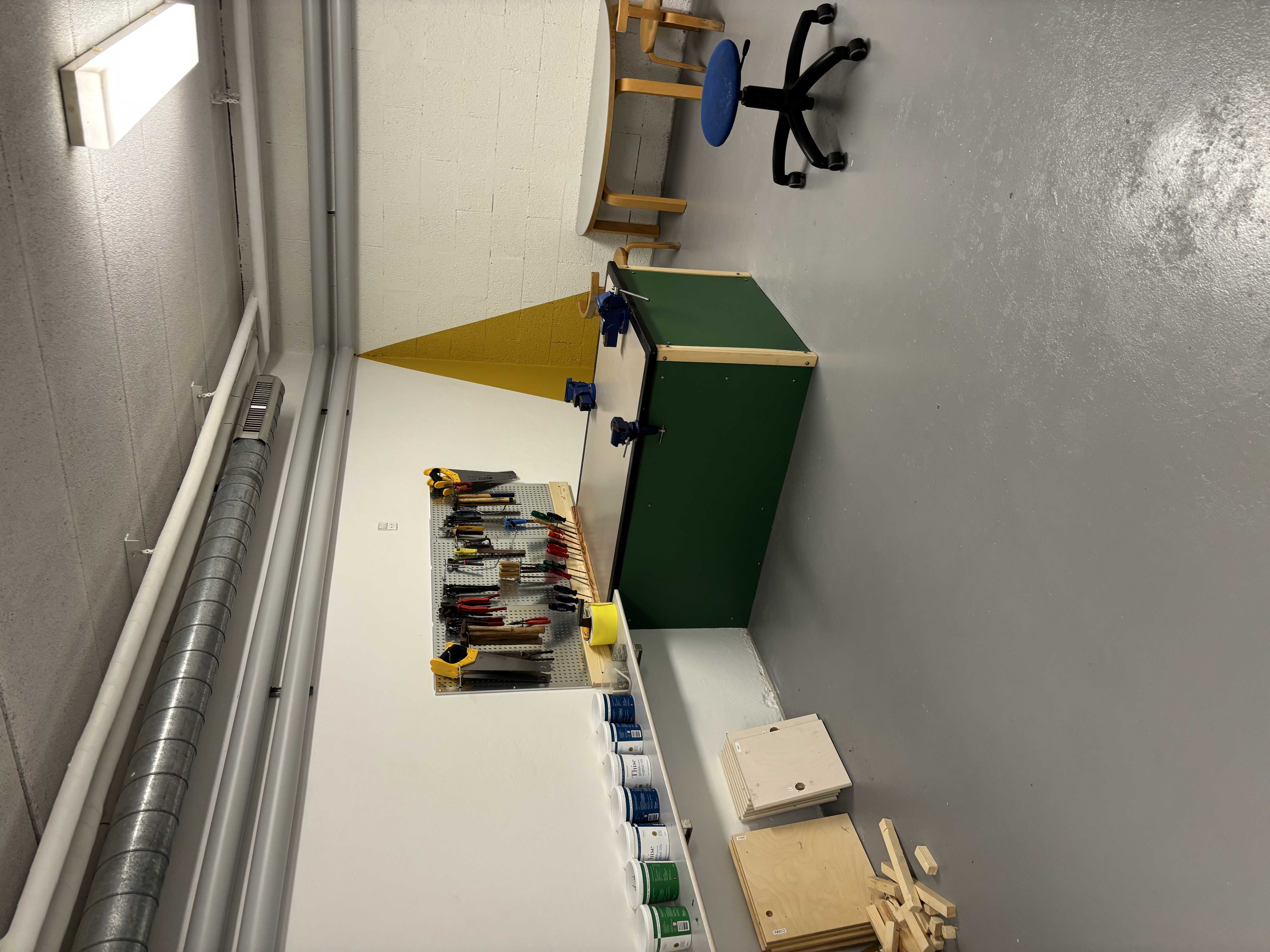 •    et værksted, hvor hænderne skaber, bygger og eksperimenterer med alt fra træ til genbrugsmaterialer