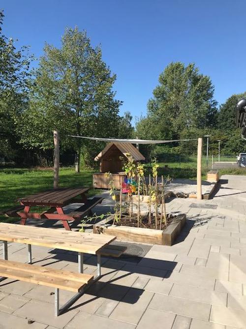 Legehuset har en skøn legeplads, der er indrettet med vilde blomster, scooterbane, gynger og meget mere. Dagtilbuddet har tre gode ladcykler, som vuggestuen ofte tager afsted på tur i.